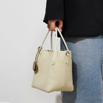 Genuine Leather Retro Bucket Bag for Women – Casual Crossbody and Shoulder Handbag