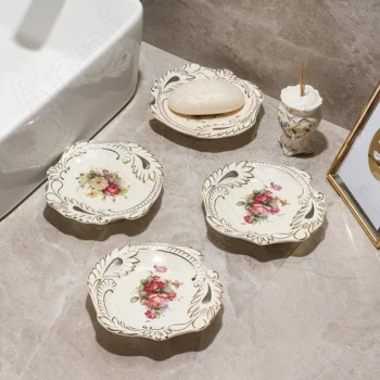 Hand-Painted Ceramic Soap Dish with Flower Design – Decorative Bathroom Accessory
