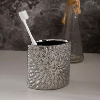 Modern Silver-Plated Ceramic Toothbrush Holder – Elegant European Bathroom Accessory