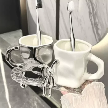 High-Grade Ceramic Toothbrush Cup Set with Rabbit Decoration