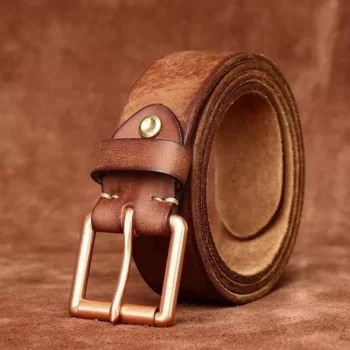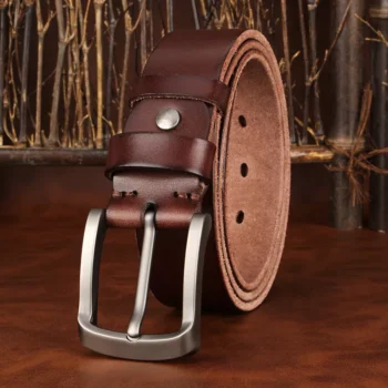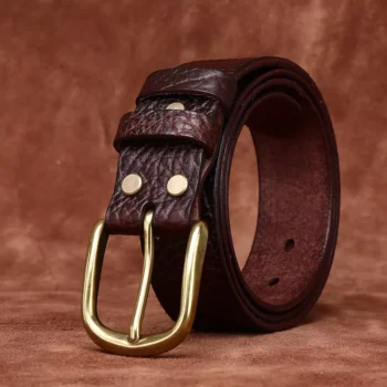 High-Quality Genuine Leather Men’s Belt with Brass Buckle