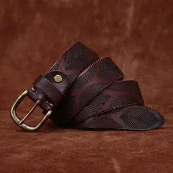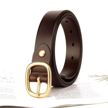 High-Quality Pure Cowhide Leather Belt with Brass Buckle
