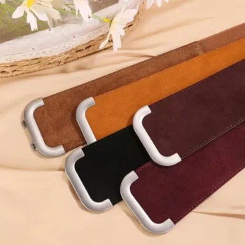 Women’s Wide Genuine Leather Stretchy Waist Belt for Dresses & Coats – Elastic Cowhide Suede Belt