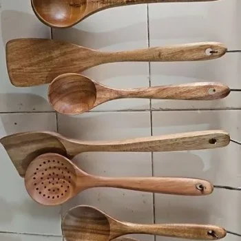 These wooden utensils are truly something special! Not only do they look gorgeous, but they're also extremely practical and durable – perfect for any home chef who wants reliable tools without compromising on sustainability. What impressed me most was the quality of each piece; it's clear that great care has gone into crafting them, ensuring longevity and performance. Plus, being made from teak wood gives them an elegant edge over traditional plastic or metal alternatives which can be harmful to our planet. An excellent investment!
