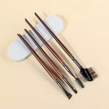 4-Piece Angled Eyebrow and Eyeliner Brush Set with Wood Handle