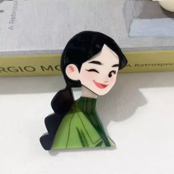 Youthful Sweet Long Pigtail Girl Brooch – Acrylic Portrait Design Badge Pin