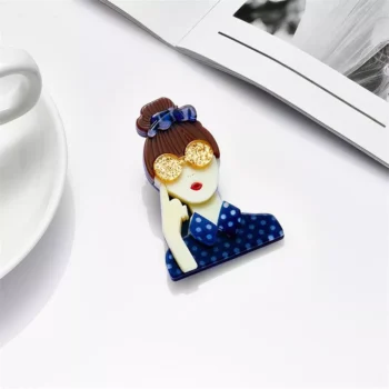 Trendy Cartoon Figure Acrylic Brooch Pin for Women – Cute Bow Lapel Pins for Bags & Clothes