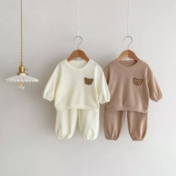 Cozy Cartoon Bear Pullover and Sweatpants Set for Baby