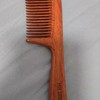What a fantastic find this wooden comb has been! It's not often you come across such beautifully crafted tools that are as functional as they are attractive. Each stroke of this fine toothed beauty glides effortlessly through my tangles while providing a calming massage to my scalp. Over time, I have noticed less static and fewer split ends in my hair which speaks volumes about its effectiveness.