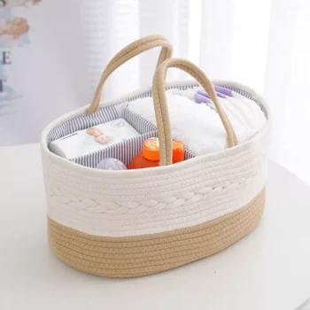 Handcrafted Cotton Rope Baby Diaper Caddy Organizer with Divider
