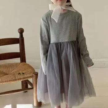 Girls’ Long Sleeve Patchwork Tulle Dress