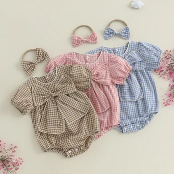 Baby Girls Plaid Romper Set with Headband