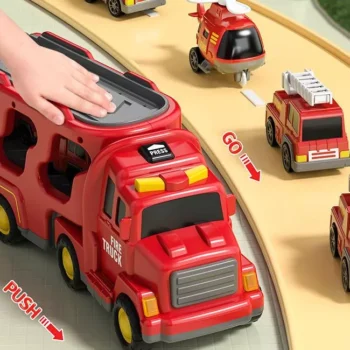 Friction-Powered Carrier Truck Transport Set with Firefighter Vehicles
