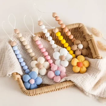 Wooden Flower Baby Pacifier Clip