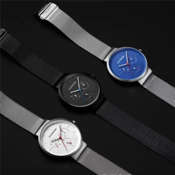 Men’s Stainless Steel Mesh Quartz Watch with Date & Week Display